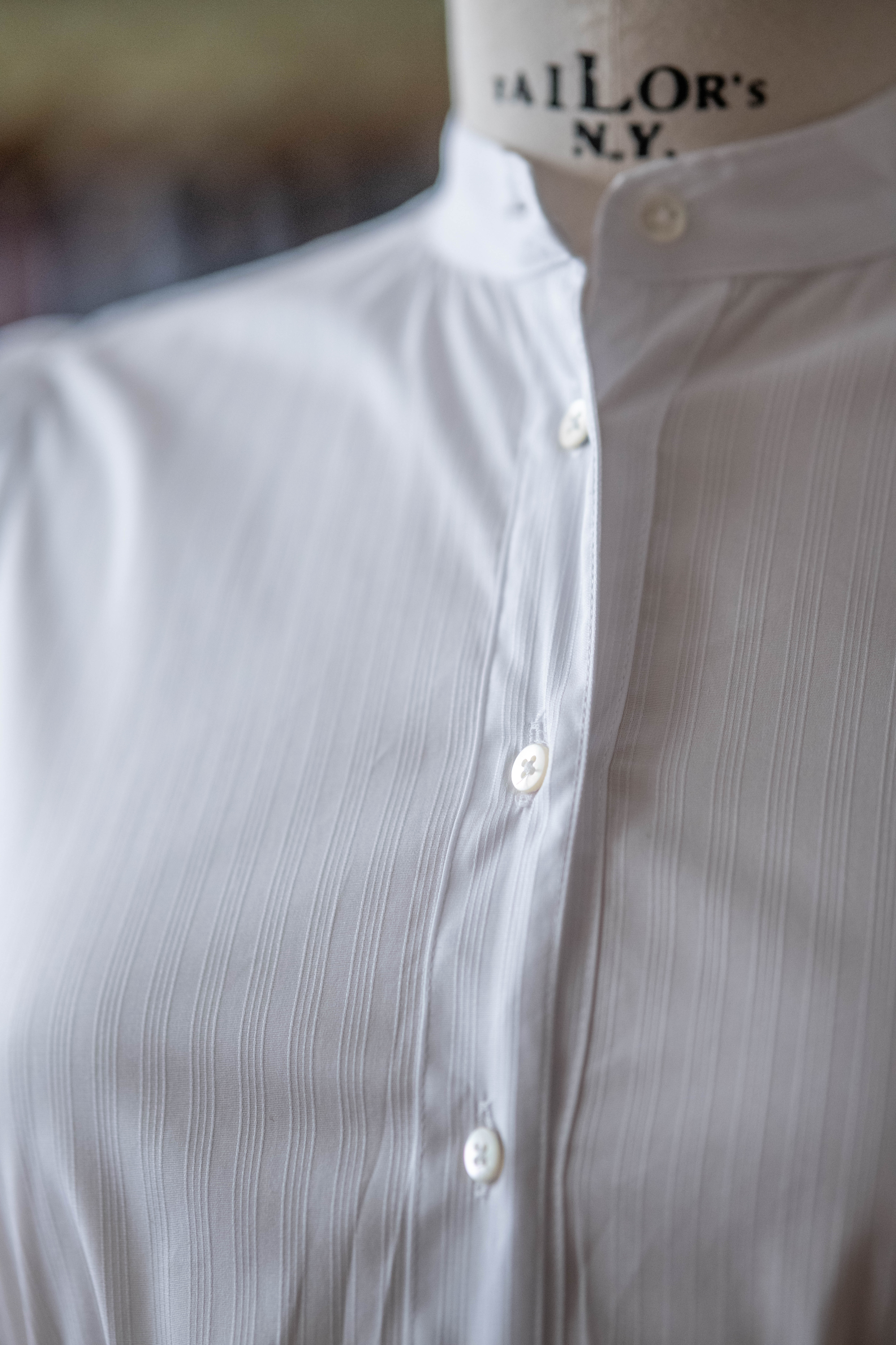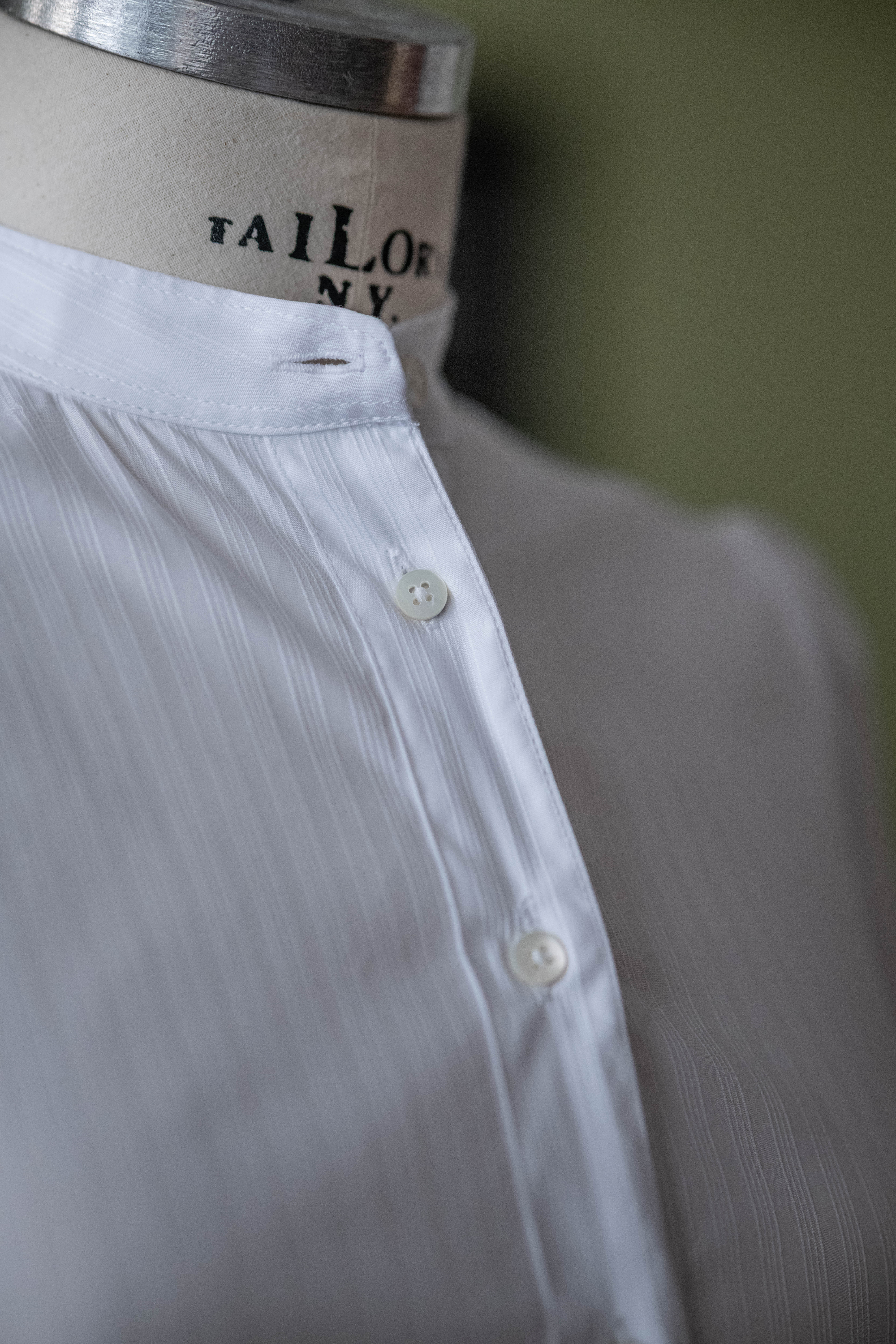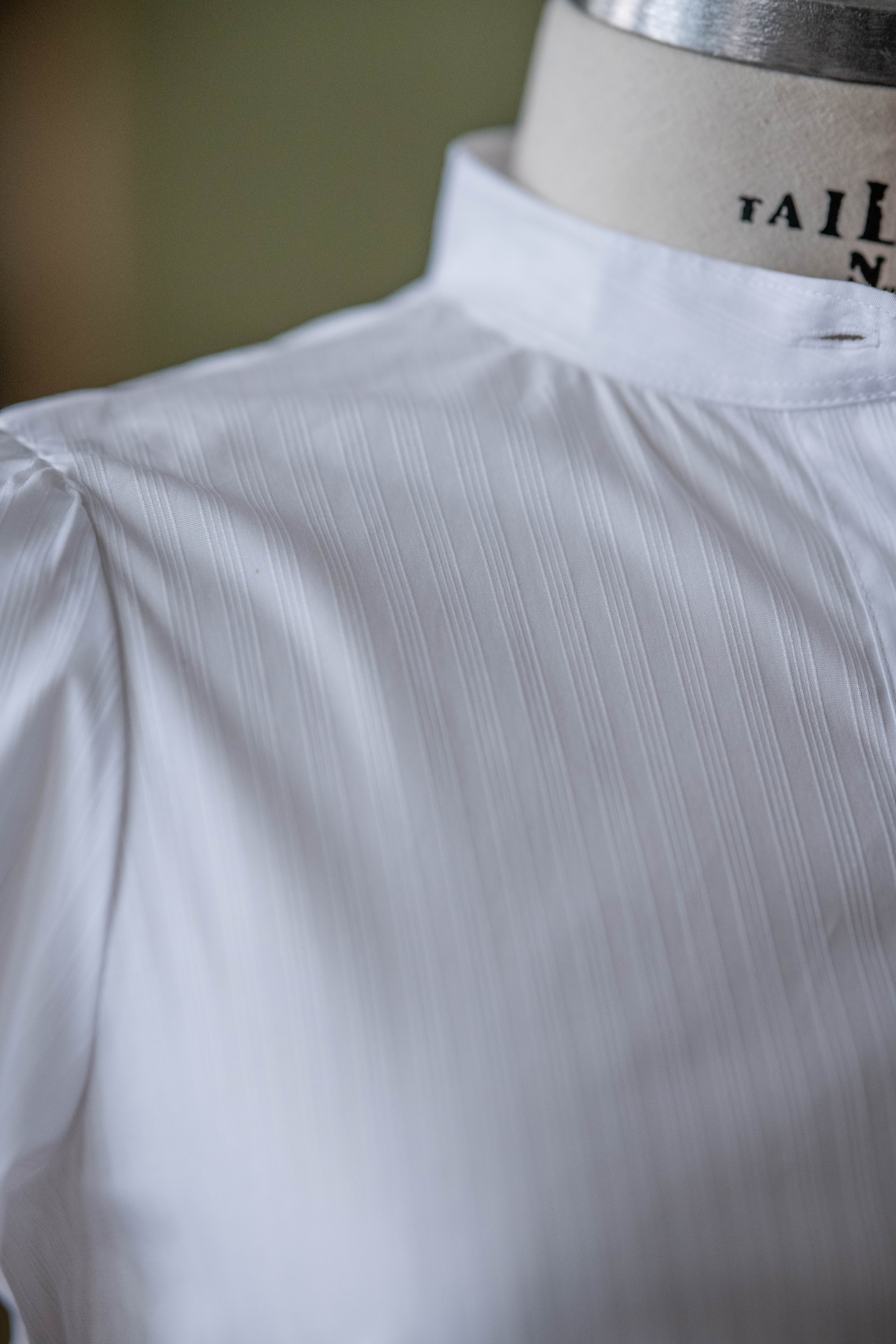 Eng angelehnt an unsere Pfoad haben wir eine sehr schlichte, hochgeschlossene Dirndlbluse entworfen.