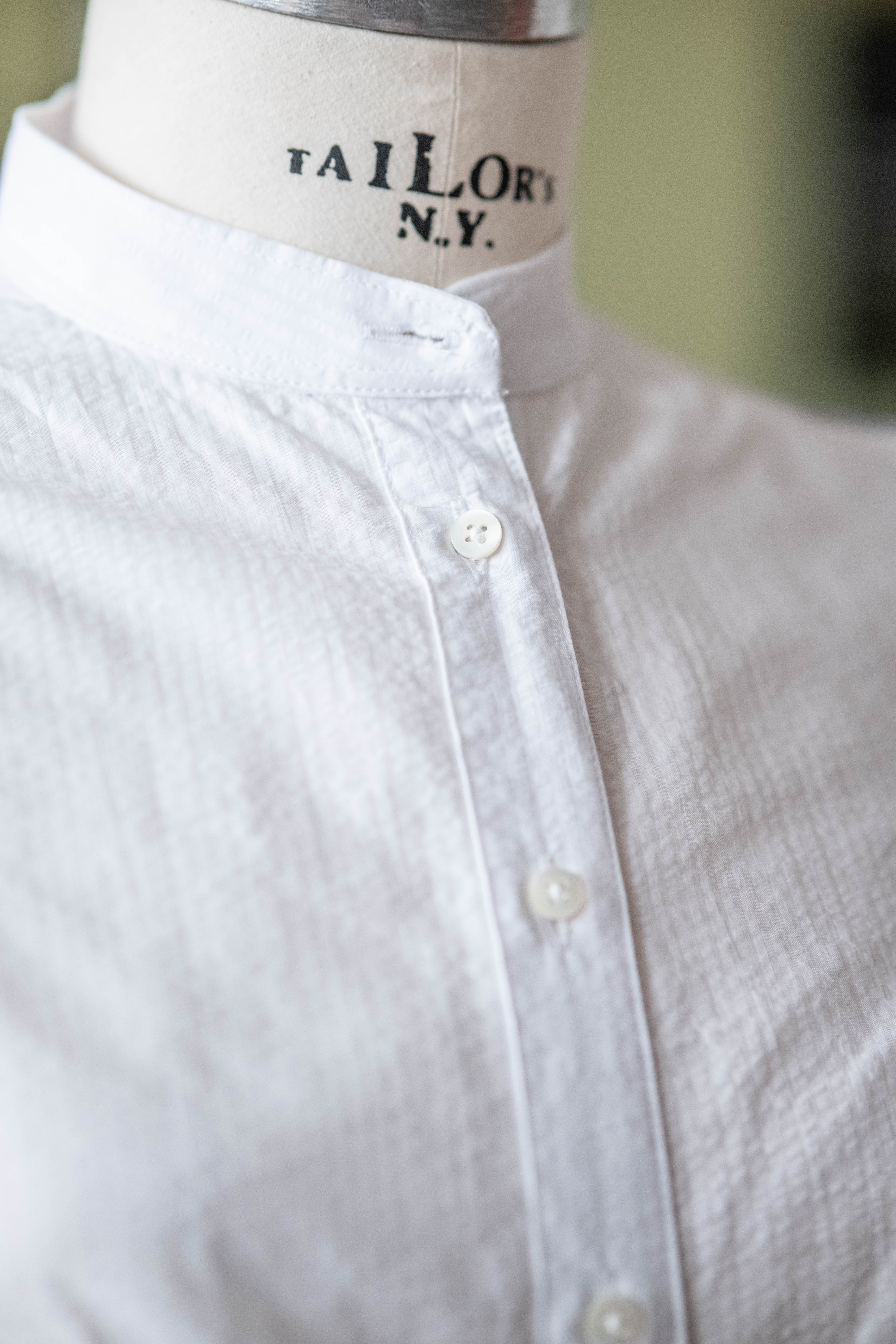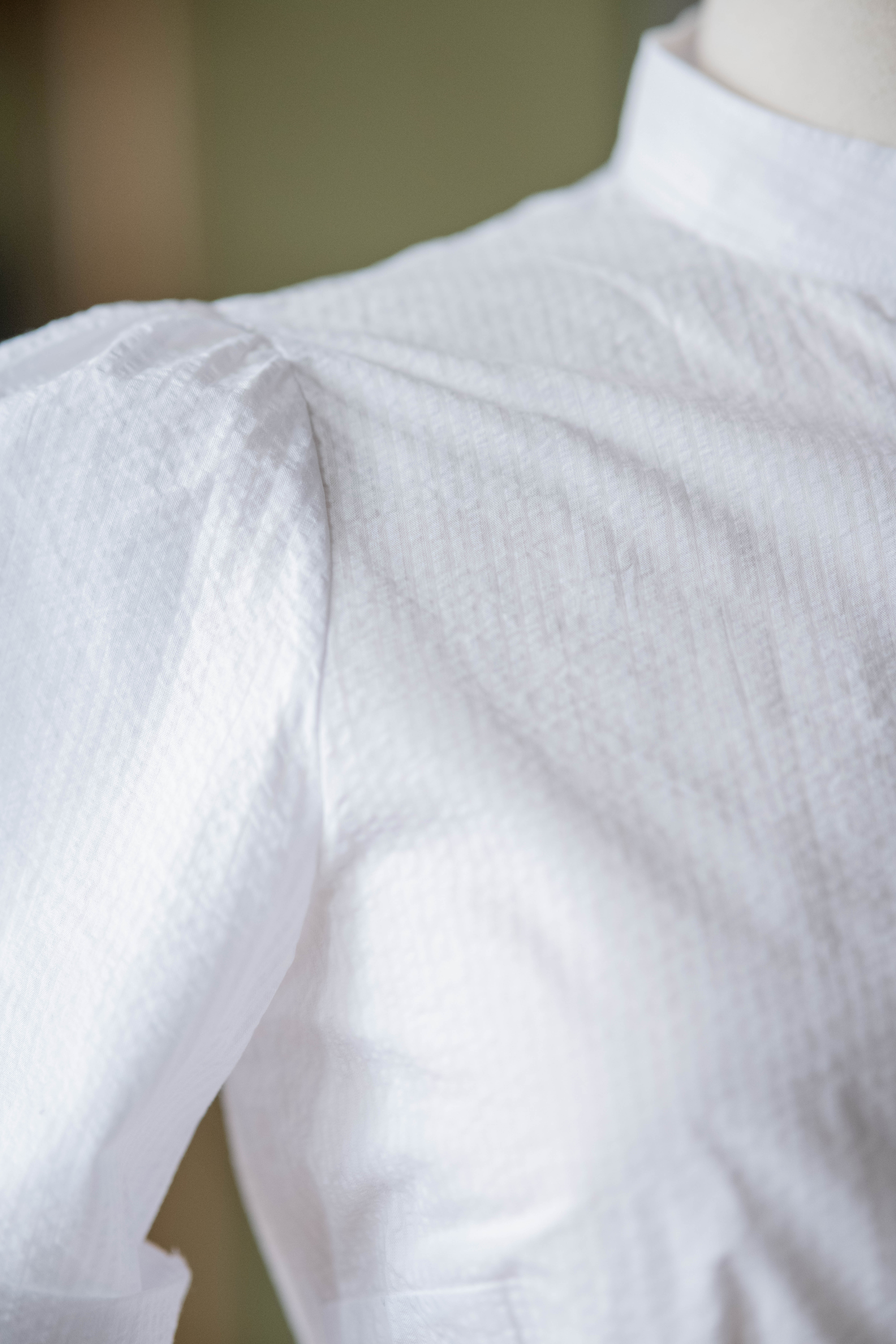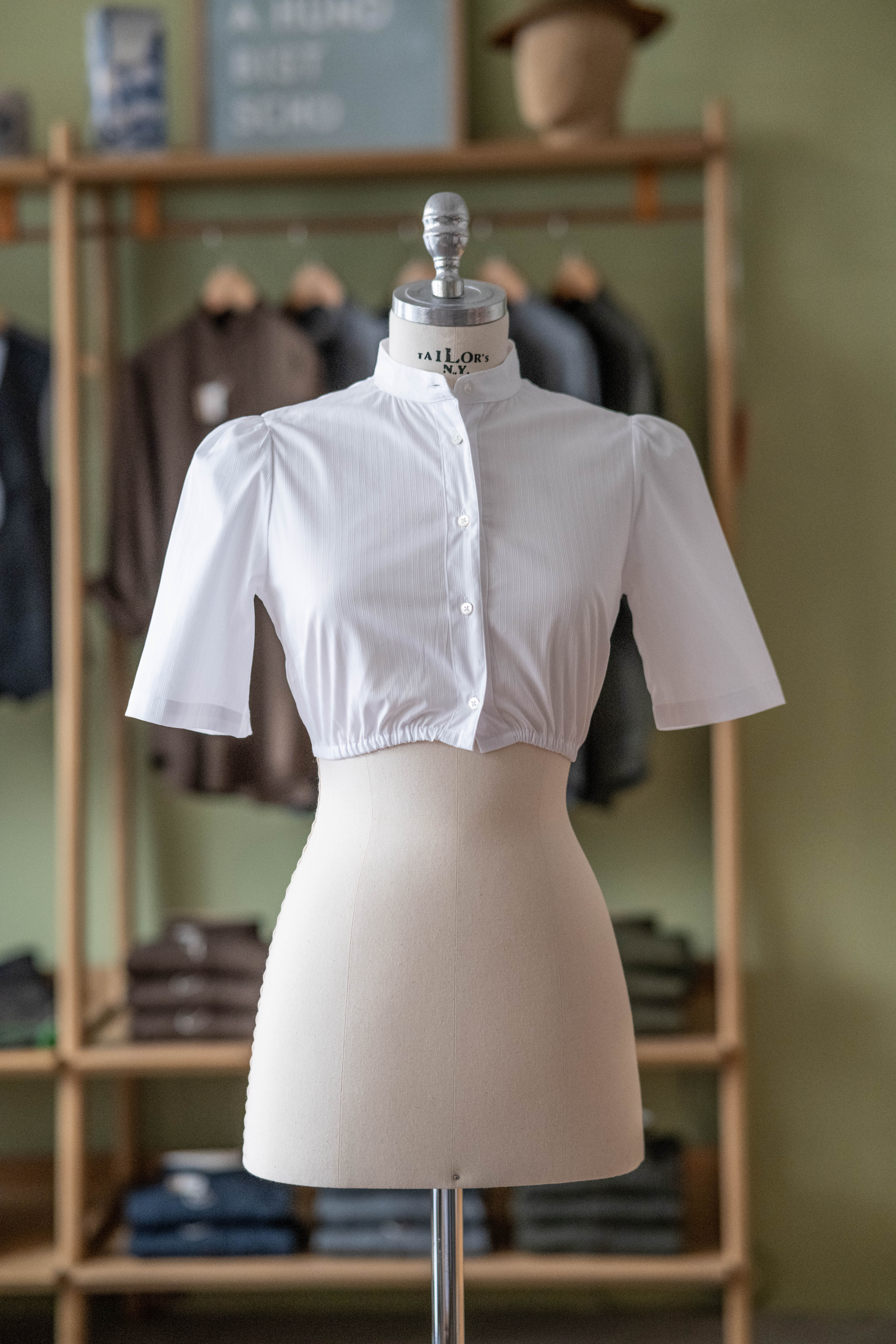 Eng angelehnt an unsere Pfoad haben wir eine sehr schlichte, hochgeschlossene Dirndlbluse entworfen.