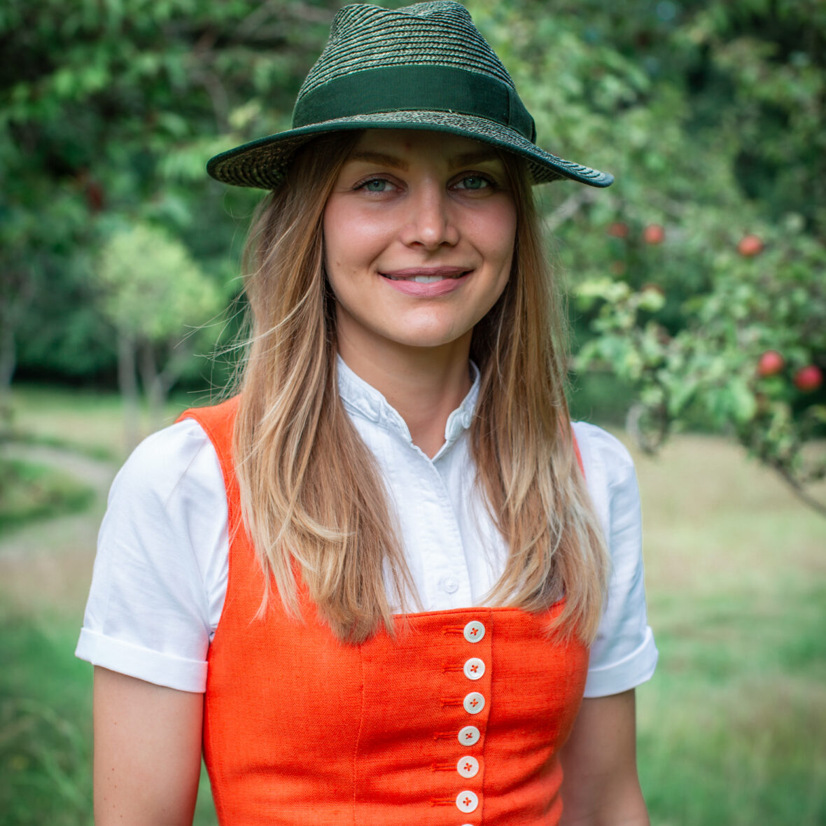 Wenn bei Euch unsere Pfoad luftig locker sitzen, sollte die Dirndbluse in der gleichen Größe sehr genau passen.