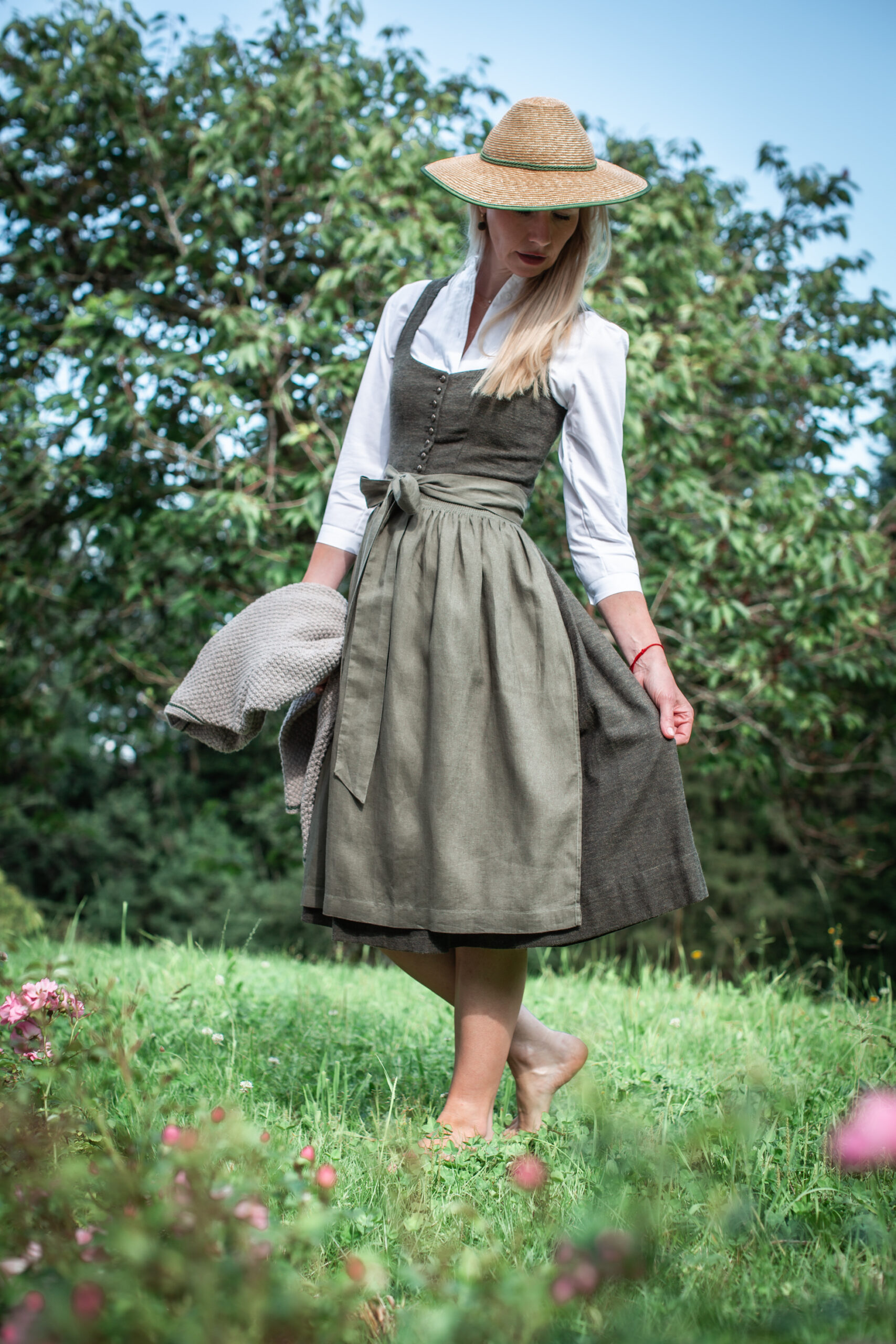 Eng angelehnt an unsere Pfoad haben wir eine sehr schlichte, hochgeschlossene Dirndlbluse entworfen. Wenn bei Euch unsere Pfoad luftig locker sitzen, sollte die Dirndbluse in der gleichen Größe sehr genau passen.
