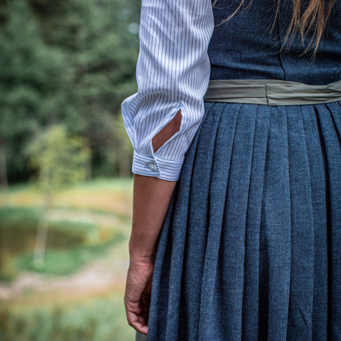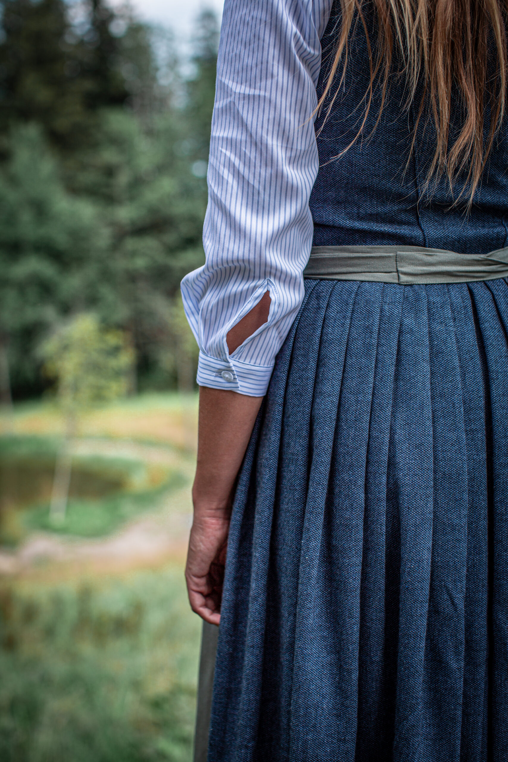Eng angelehnt an unsere Pfoad haben wir eine sehr schlichte, hochgeschlossene Dirndlbluse entworfen. Wenn bei Euch unsere Pfoad luftig locker sitzen, sollte die Dirndbluse in der gleichen Größe sehr genau passen.