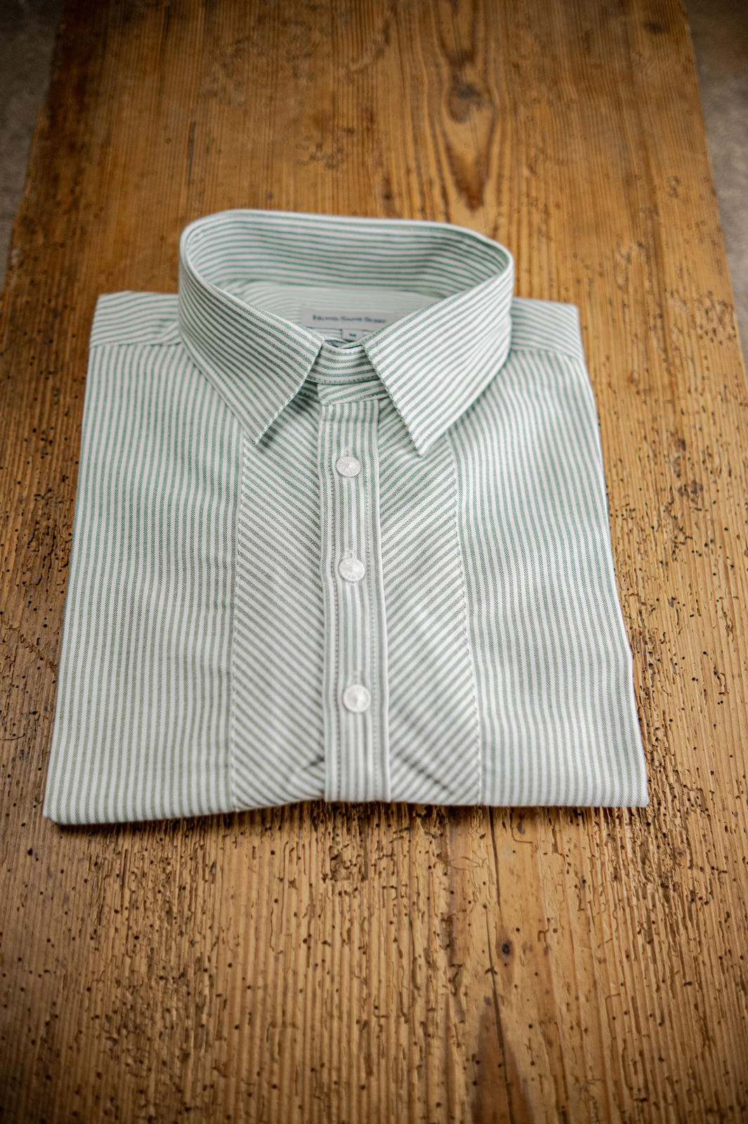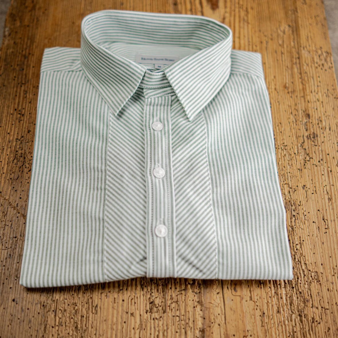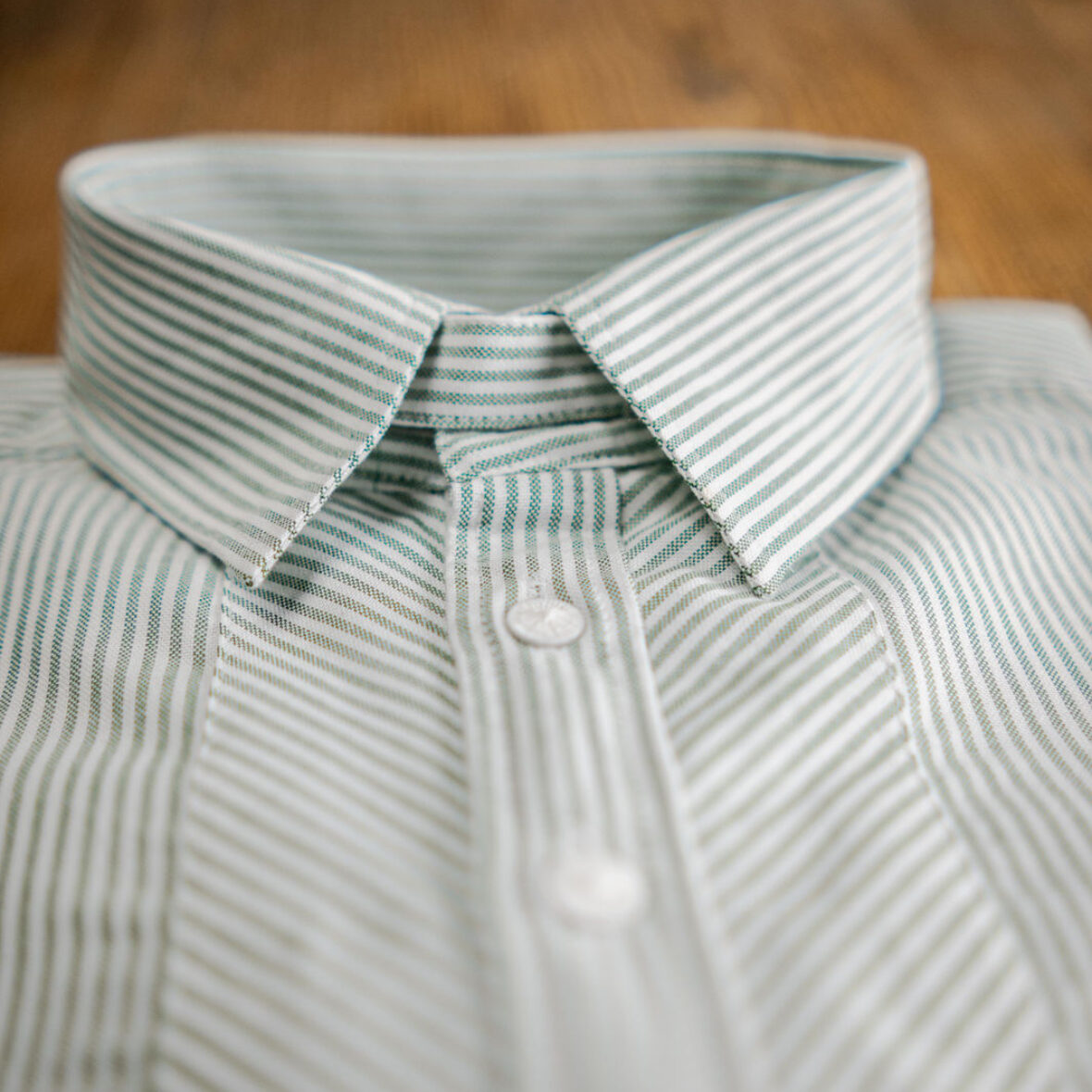 Trachtenhemd Umlegekragen Schwesternstreifen weiß/grün – schmaler Schnitt