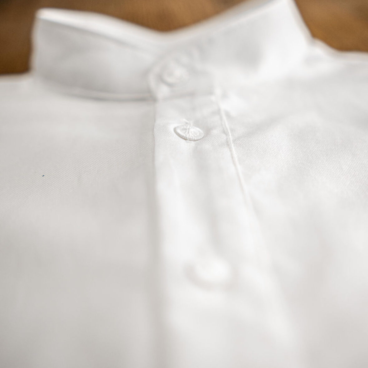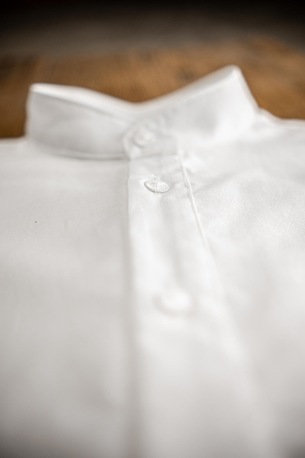 Weiße Pfoad bieten wir in 3 Varianten an. Es gibt unseren typischen Stehkragen, einen Umlegekragen und einen abknöpfbaren Kragen, um die Vorteile beider Optionen gleichzeitig zu haben.
