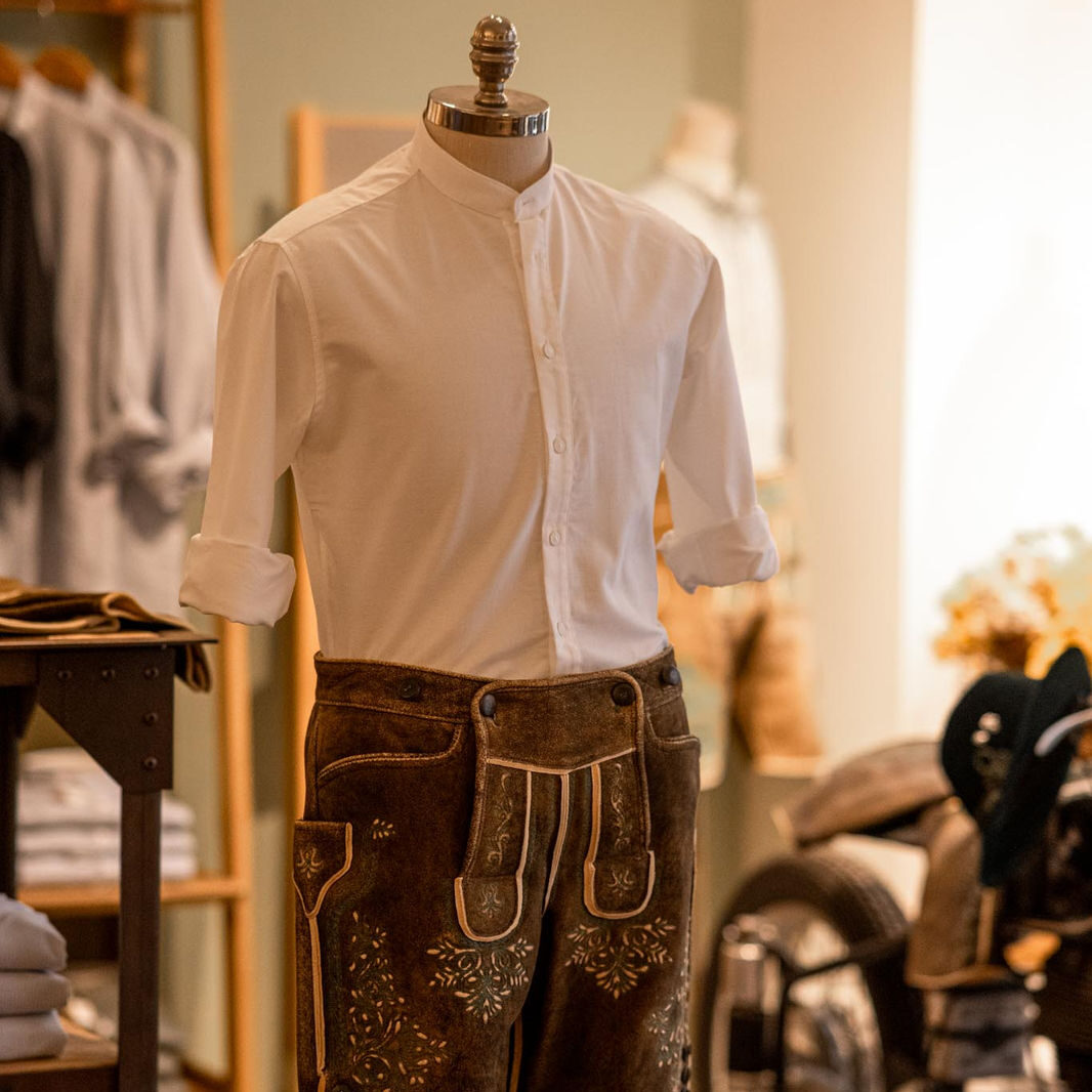 Trachtenhemd durchgeknöpft weiß – klassischer Schnitt, 100% Baumwolle