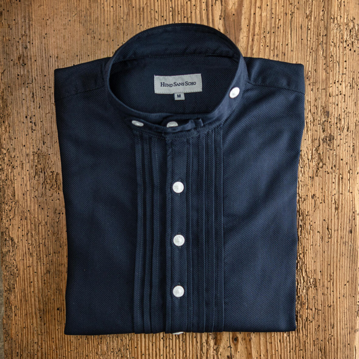 Trachtenhemd dunkelblau – klassischer Schnitt, 100% Baumwolle, Piqué