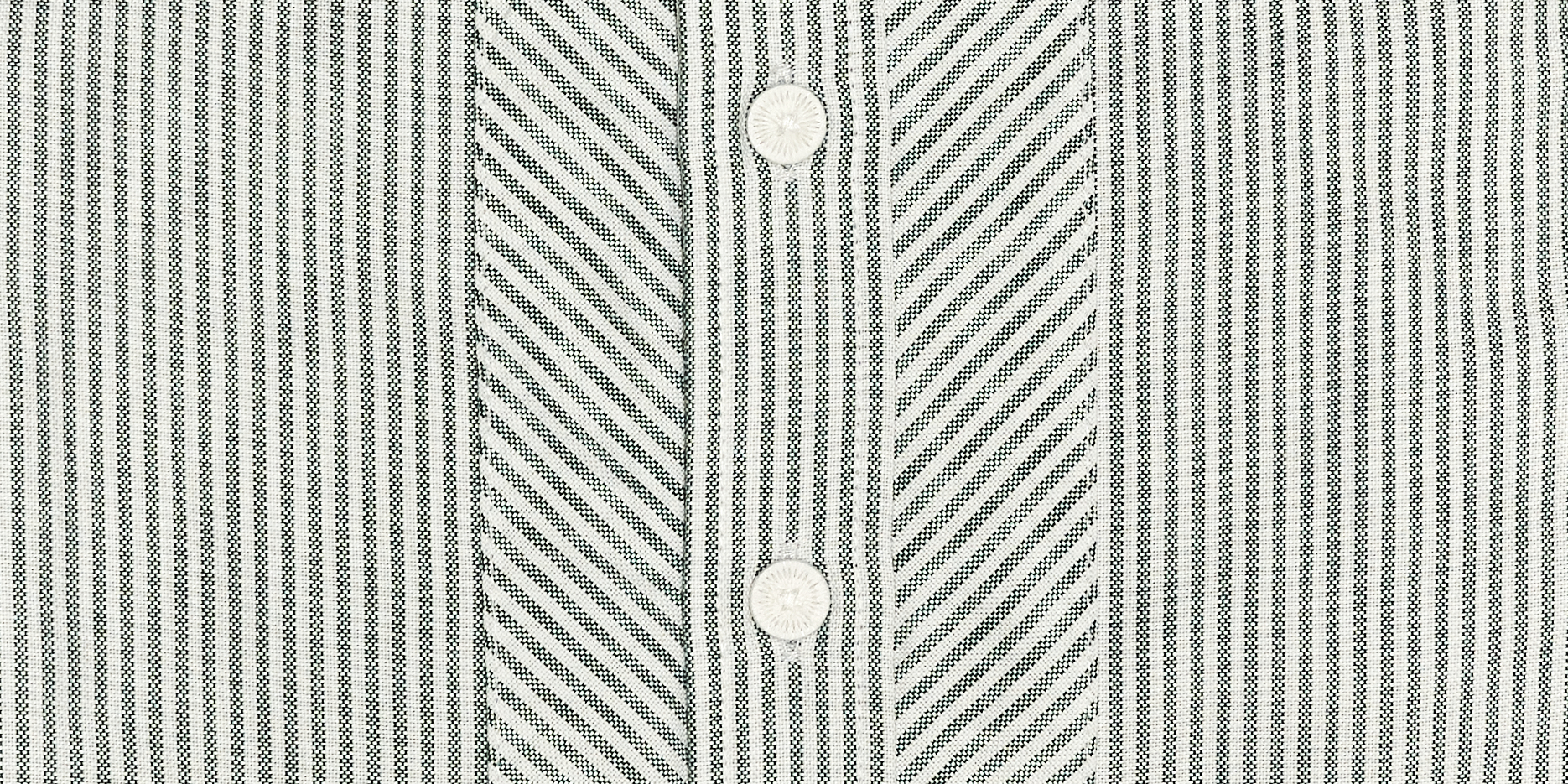Unsere feinen Schwesternstreifen sind ein wenig zu unserem Markenzeichen geworden. Wir mögen die diagonal liegenden Streifen auf der Brust sehr und finden, dass sie eine wunderschöne Abwechslung zu den klassischen Biesen sind.